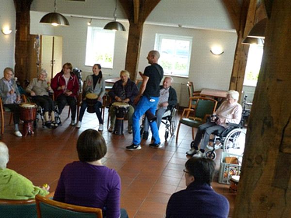 Heute steht „Musik selber machen“ auf dem Programm. Nach dem Kaffeetrinken besucht uns Herr Jörg Kerll, vom Klangzentrum Osnabrück. Er hat Trommeln, Rasseln und viele weitere Instrumente im Gepäck. Diese dürfen wir alle mal ausprobieren. Wir waren eine richtig große Musikgruppe. Am Abend spielten wir dann noch ein paar Gesellschaftsspiele oder genossen ganz entspannt ein Glas Bier bzw. Wein.