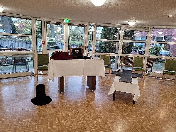 Der Gottesdienst wurde von Pfarrerin Britta Meyhoff vorbereitet und von Pfarrerin Fr. Meyhoff (evangelisch), Hr. Hüfing (EL), Fr. Volkmann (ÜD), Hr. Jansen (H3), Fr. Küsters (WB2) und Fr. Feer (WB1) durchgeführt. Eingeschlossen in ein Gebet, wurden die Namen aller verstorbenen genannt und es wurde für jeden einzelnen eine Kerze angezündet welche dann auf ein Kreuz gelegt wird. Desweiteren hat Sibel (Praktikantin der Ergotherapieschule Nordhorn) für jeden verstorbenen Bewohner eine Rose in eine Vase gestellt.