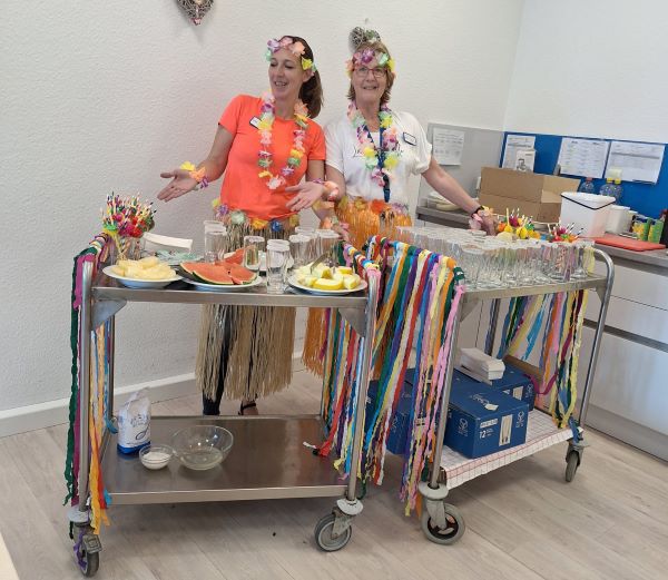 So machten wir uns, mit einem Cocktail Wagen und typischen Sommer- und Urlaubsliedern auf den Weg, und besuchten jeden Bewohner auf seinem Zimmer.